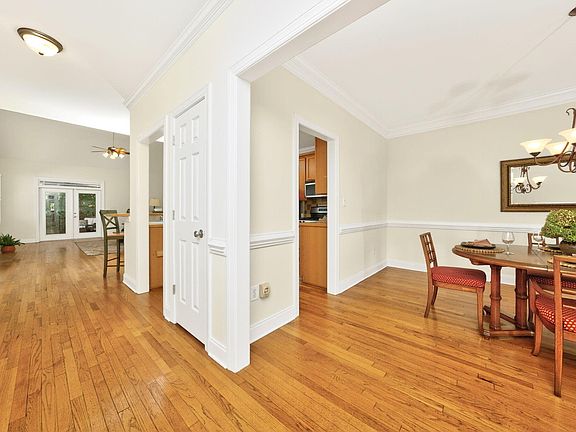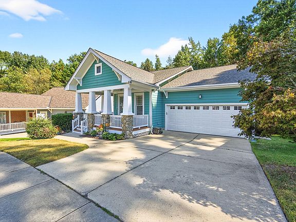 Showings start Friday, 9/26. Welcome to this charming 3 bedroom Craftsmen-style bungalow, situated on a RARE .25 acre PRIVATE, WOODED lot in sought-after Green at Scotts Mill! Step inside to experience one level living at its finest with this ideal floor plan featuring gleaming hardwood floors throughout (no carpeting) and DRAMATIC cathedral ceilings in the primary bedroom and spacious family room! Just off the entry is the formal dining room which can also serve as a convenient home office. The entry hall leads you to the chef's kitchen with stainless steel appliances, tile backsplash, a 4-burner gas range and eat-at breakfast bar - perfect for entertaining or casual everyday dining. The spacious family room is highlighted by a gas log fireplace. Just off the family room is the expanded rear screened porch that is perfect for relaxation and bird watching. In the rear of the home, the primary bedroom suite lives large with its soaring cathedral ceiling, en-suite bath with dual sinks, soaking tub and separate walk-in shower. Outside, explore the whimsical rock garden labyrinth and garden trellis that leads to the paved Beaver Creek Greenway/walking trail! In addition to the fridge, washer and dryer that convey, other extras include a covered front porch complete with swing and a walk-in crawl space that's large enough to store all of your garden tools, recreation equipment and so much more! Recent updates deliver added peace of mind and value, including fresh interior and exterior paint in 2025, a new roof in 2022, and new HVAC system in 2013. This one feels special from the moment you step through the front door. Located in the desirable Scotts Mill neighborhood with community amenities and neighborhood events, this home is just minutes from charming Downtown Apex, Beaver Creek shopping, and major commuter routes to Raleigh, RTP, and Durham. Don't miss the opportunity to own this delightful Apex home—schedule your private showing today.