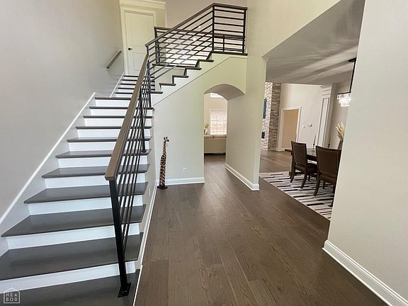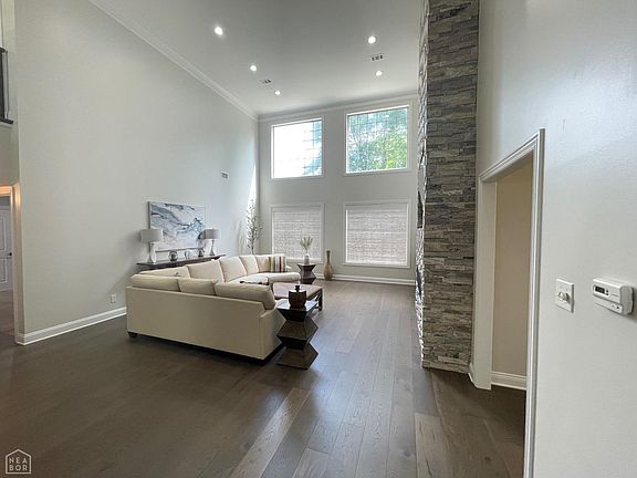 This beautiful custom designed home was renovated in 2020. Walking through the custom iron front door into the Foyer you notice the modern style custom stair rails leading up to the second floor. From the balcony overlooking the formal living room, you marvel at the high ceilings and natural light coming from the four massive windows at the far end of the living room. A large stone fireplace surround with a large linear modern gas fireplace warms the formal living room while providing a relaxing atmosphere. Next is a Westbrook kitchen with custom cabinetry, built in pantry, bar and large island with a waterfall. The kitchen boasts Quartz countertops with a full quartz backsplash that compliments the beauty of this modern kitchen. A Wolf 6 burner range top, double wall ovens consisting of a professional convection oven and professional speed oven were added for the chef of the family. A subzero integrated commercial size refrigerator and under counter beverage/wine center keep everything chilled and fresh. Last but certainly not least, is the Scotsman Sonic ice maker. Moving to the formal dining room, you will find engineered hardwood on the floors throughout the main living areas with luxurious carpet in the bedrooms and the bonus room. The Master Bath boasts a freestanding soaking tub for those long relaxing baths we all love; with all of the hot water you could ever want from the Tankless Hot Water Heater. Complete with a concrete safe room, 213 Huntcliff is ready to be the home of your dreams.