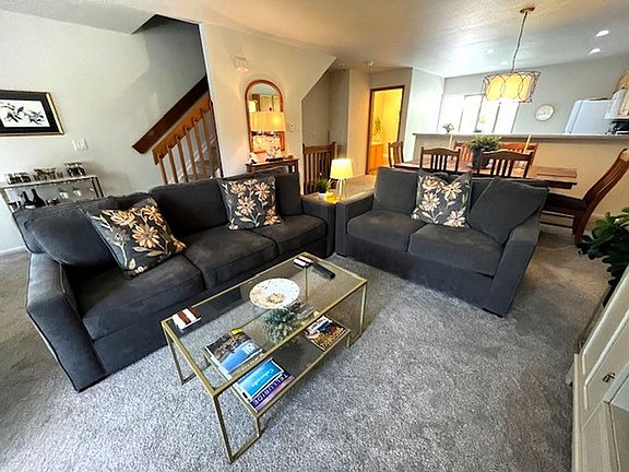 This multilevel town home offers a blend of modern comfort and natural beauty! Includes a fully equipped kitchen with new appliances, linens and sleeps 4 with king in master and queen in guest. The property also includes a two sided gas fireplace, full size washer/dryer, and 1 car attached garage with space for ski storage. Enjoy wildlife viewings from the patio backing to wooded open space.