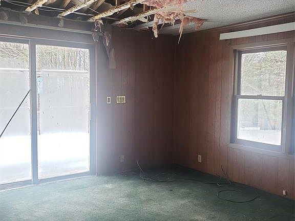 Welcome to this private, rural setting up in the hills on 2 acres. Bring your cash and re-do this home to your liking. It features a family room with sliders that walk out to a back deck overlooking a private yard & woods. Large open kitchen with bar area and formal dining room. There's a master bedroom with large private bath and 2 additional bedrooms. Also features a large 2 car detached garage as well.