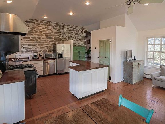 Sited on a quiet country road amid 29 acres of old growth forest and open meadow, and on the banks of a woodland pond, this sophisticated ca.1800 stone farmhouse with later wood-frame additions is the quintessential Hudson Valley getaway. Original wide-board floors, exposed beams and period detail abound. There are wood burning fireplaces in the living and dining rooms, as well as the lower level study, currently being used as a fourth bedroom. The well-outfitted kitchen with vaulted ceilings features a true commercial Wolf range with griddle and salamander, as well as a useful island and plenty of storage. The adjacent dining and sitting areas make this a space where friends and family will want to gather by the wood stove or gaze at the magical property through an abundance of windows and French doors. When the warm weather comes, there's a heated gunite pool to splash around in, an outside shower, stone walls and woods to explore, and the vast pond and its birdlife. The vintage chicken coop is great for storing gear and garden supplies and could make a great studio, meditation space or maybe even a guest cottage.