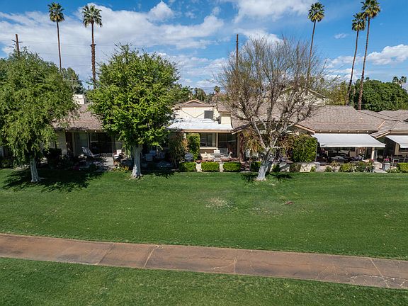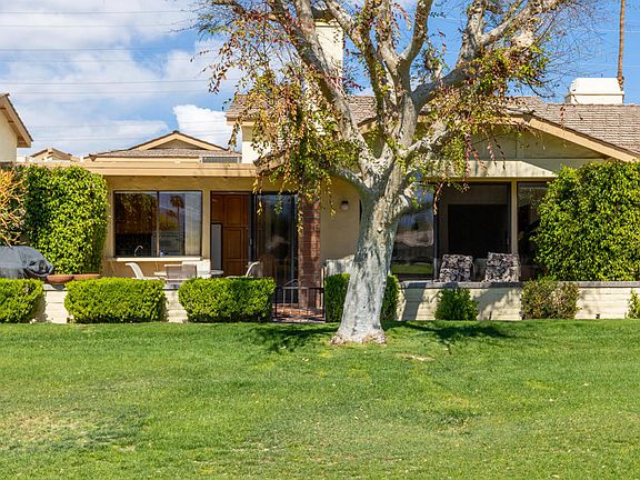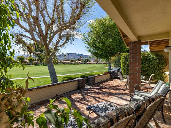 Panoramic views from this south facing 3 bedroom and 2 bath (1,800 sq. ft) turnkey condo located in lovely Monterey Country Club. As you walk into the home, you are greeted with high ceilings, sunlight, and beautiful southern views. It features three bedrooms, one of which is a versatile den classified as such due to city egress requirements. The large back patio is the perfect space to enjoy morning coffee or to relax and enjoy the the deserts beautiful sunsets. Large two car garage provides space for additional storage. Golf cart is included. New water heater and newer AC unit. Monterey CC offers a Clubhouse, fitness center,27 holes of Ted Robinson designed golf, 13 tennis courts, 20 pickleball courts, bocce, and 37 pools & spas for your enjoyment. Convenient location within the community and quiet. Located close to great shopping, restaurants, hiking and everything the Desert has to offer. Start enjoying your desert lifestyle today!