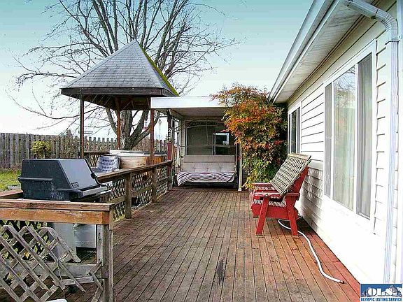 Wonderful manufactured home in the historical McFarland Farm community, with two ponds, 13 fruit trees, green house and a shop that is 864 sq. ft. with 220 volts. The home boasts a super mountain view of the Olympic Mountains. The home needs upgrading( floor coverings, paint and appliances). Great floor plan with the master at one end and the other two bedrooms at the other end, common area in the middle. The well is shared with the neighbor only $50.00 a year and the H.O.A. only $50.00 a year.