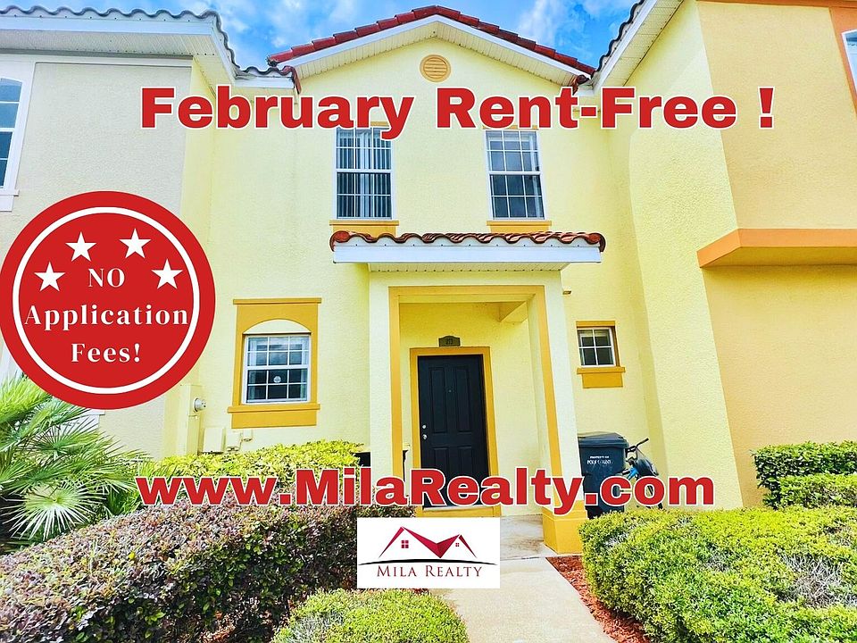 Available NOW! $0 Application Fee for Pre-Approved Applicants + FREE February Rent! Stunning 3-Bedroom, 2-Bathroom Townhouse near Champions Gate. This beautifully maintained townhouse offers the perfect blend of comfort and style. The spacious kitchen features custom tile, complemented by elegant paint and upgraded lighting fixtures throughout the home. The three generously sized bedrooms offer a peaceful retreat with plenty of space for rest and relaxation. Each bedroom boasts ample closet storage, ensuring a comfortable living experience for all. The two bathrooms are thoughtfully designed with stylish fixtures and finishes to provide both convenience and luxury. Relax in the cozy living area that leads to a charming screened-in patio, ideal for unwinding or entertaining. Located just minutes from the world-renowned Disney theme parks, as well as shopping, dining, golf, and morethis is the perfect place to call home. INQUIRE NOW!