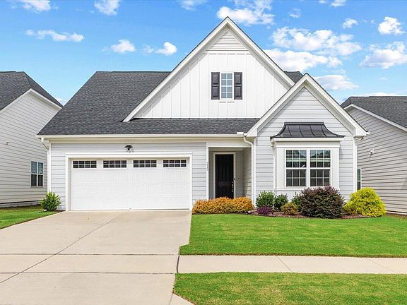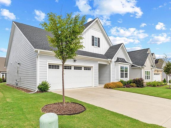 Welcome to luxurious living at Auburn Village, an exclusive 55+ Active Adult Lifestyle Community! This open-concept, one-level living experience with no steps, ensures ease and comfort. From the moment you step onto this property, you'll be captivated by the charm and elegance of this spectacular home. The enhanced vinyl plank flooring extends throughout the home. Spacious family room features custom high-end built in bookshelves surrounding a gas fireplace, perfect for cozy gatherings. The gourmet kitchen offers quartz countertops, designer tile backsplash, enhanced stainless steel appliances with chimney hood, built-in convection oven, built-in sensor microwave oven, smart hybrid dishwasher with hidden controls and a large center island. There is a supersized walk-in pantry/closet. The primary bedroom features a tray ceiling and a spacious walk-in closet. The primary bathroom offers dual vanities and a relaxing soaking tub. The study/office can be easily transformed into a third bedroom by adding a closet. Enjoy the great covered patio for grilling with family and friends. A large 2-car garage offers ample space for vehicles and storage. Additional Features Include but not limited to: Tankless hot water heater, Blackout Blinds, Accordion Shades, Ceiling fans with lights Hanging rack in garage for extra storage, Finished and painted walls in garage, Full Smart Home with Ring Smart Alarm and recording detectors, Water Sensors which detect leaks in the home, Recessed Lighting, Professional Landscaping with custom sized appropriate plants and bushes, Pre-wiring for Pendant Lighting in Kitchen, Honeywell Home Pro Series Smart Thermostat. Enjoy all the amenities and social activities and clubs offered - Clubhouse, Heated saltwater pool, Pickleball courts, fitness center, multi-purpose room, walking trails and so much more! Conveniently located within close proximity to shopping, medical, dining, I-40, Hwy 70, and other main thoroughfares for easy access to Raleigh, Durham, RTP, RDU airport & more!