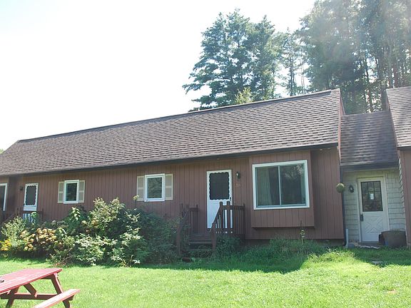 Owner occupied 2 unit each on one level, 2 bedrooms per unit, one side has service entry and garage with overhead partially finished room (storage now) above garage, each unit has its own separate basement with separate interior and exterior entrances, main unit has energy efficient solar panels, separate driveways with plenty of parking spaces, appliances included, separate washer/dryer hookups, most windows have been replaced, architectural shingled roof...all on 10 acres with walking trails, pond, and stream. Owners have been here many years, thoroughly enjoyed this property...used to have horses. Country yet close to all conveniences. Great owner occupied or investment property.