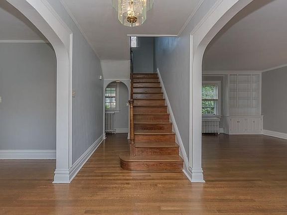 Charming brick home on level landscaped lot. Period details with updates. Hardwood floors have been refinished; interior has been painted and new floor installed on first floor laundry room. Living room has built ins and fire place; dining room has built ins; family room has fireplace and access to back stairs to second floor. Newer master bath ensuite with walk in closet. Two other full baths on second. Newer A/C. Private rear patio. Short walk to elementary school and bus stop. Quiet street. Move in ready