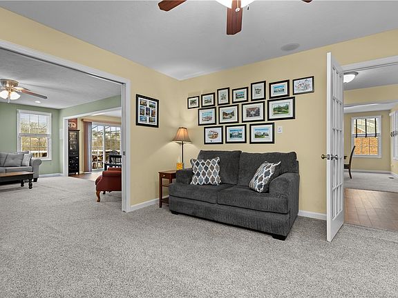 Built by Award Winning Heartland Homes, this exceptional residence features meticulous landscaping, full front porch, & 3 CAR side entry garage. The main level hosts a multifunctional den/office & a formal dining room, a well-appointed kitchen centers around a large island w/stainless steel appliances, tiled backsplash, sizable pantry , & access to the main floor laundry. The expansive family room is ideal for relaxation . Enjoy the no-maintenance deck w/removable awning, treed view overlooking the LEVEL & FENCED YARD! The 2nd floor features a primary suite w/ a remodeled bath - complete w/ garden tub & an elegantly tiled shower. Two additional bedrooms share a tastefully remodeled hall bath & complete the upper level. Conveniently located to RT 19, I-79, Southpointe business complex, shopping, entertainment, Peters Township Schools, & South Hills amenities. Don't miss the chance to call this exquisite property your own—an ideal fusion of luxury, functionality, & location.