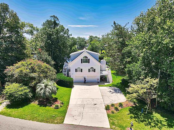 213 N Myrtle Drive is a beautiful 3 bedroom/3 bath home located less than 3 blocks to the beach in Surfside. The master suite is located on the top floor of this unique property. It includes a large bedroom, oversized bathroom, bedroom sized closet, a sitting room/office overlooking the pond and pool, and your own private deck. Enjoy your morning coffee with the sea breeze on your back deck, while watching the wildlife and waterbirds on the pond in the backyard. This property has mature trees and lush vegetation found in an established community, but has the openness and upgrades of a newer home. Upgrades include: crown molding throughout, 2 full master bedrooms, 3 decks, flood lights, in-ground pool, seawall, etched windows in the master bathroom, granite countertops and backsplash, custom cabinetry throughout, fenced in yard, and so much more. The living area features oversized windows overlooking the professionally landscaped backyard, pool and pond. Tons of storage throughout! This lovely home is located just a short walk to Surfside Beach and the new pier, the library, Fuller Park, restaurants and entertainment.