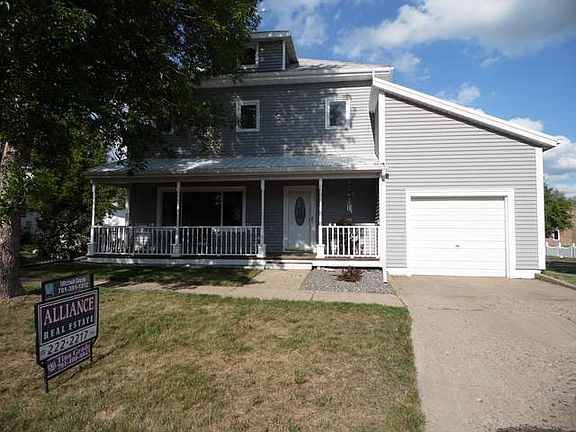 Enjoy summer evenings sitting on the front porch of this nostalgic looking home within walking distance to schools and parks. Walk in to the spacious entryway that leads in to the living room that overlooks the porch. The kitchen and dining room are bright, open, and cheerful and also have a built in breakfast nook. There is one bedroom on the main floor, and a full bath with new tub, tiled shower, updated sink and vanity top. The back entry also holds the laundry and a sink to wash up when you come in from the yard. The upstairs has 3 good sized bedrooms and a 1/2 bath. There is also a door that leads to storage above the attached garage. The basement has 2 non conforming bedrooms, a kitchenette, dining, living room, and a 3/4 bath. The back of the house has a deck overlooking the spacious yard and double detached garage. The house has vinyl siding and the porch and attached garage have new metal roofing. Priced to sell! Make an appointment today to see this great house!
