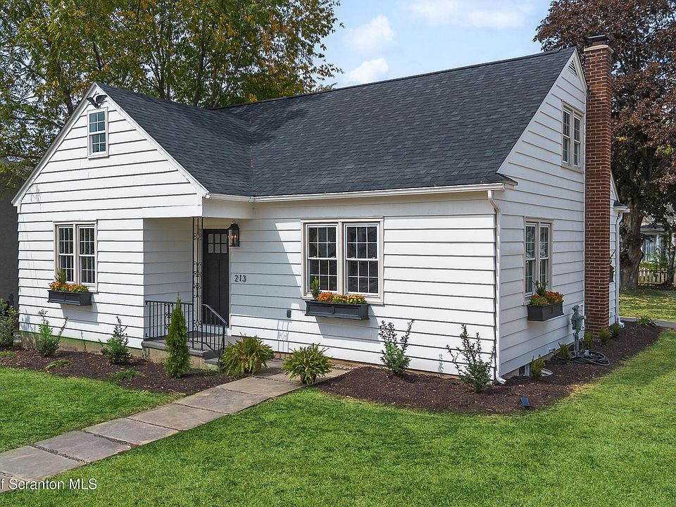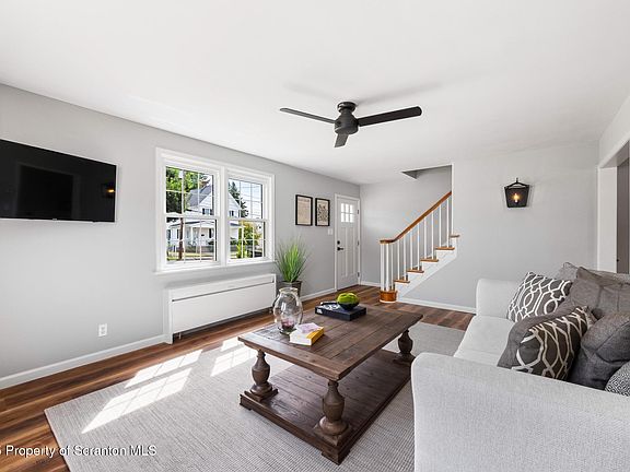 THE SCONCE HOUSE- Newly remodeled 3 bedroom - 2 1/2 bathroom Cape Cod style home on a prime corner lot in Dunmore. Tons of natural light and a clean new design. Designer lighting sconces are evident in the living room and two 2nd floor bedrooms. The floor plan has been updated to add an additional full bathroom and 2 walk in closest. Most of the entire home has been re-sheetrocked.The first floor primary bedroom has an oversized walkthrough closet that leads to the huge bathroom with a double vanity sink, completely tiled shower with heavy shower door. The kitchen has new appliances, electrical and flooring.An additional half bath was added to the main 1st floor allowing the owner to have their own private area. The yard is fully graded, landscaped, seeded and new sidewalks.