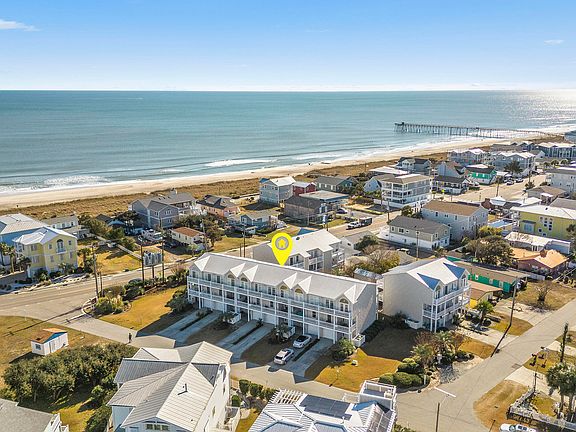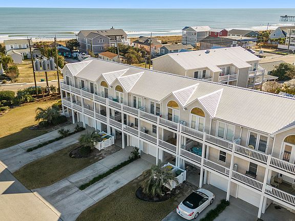 A rare opportunity located in the heart of Kure Beach, this furnished 4-bedroom, 3.5-bathroom townhome offers a perfect blend of comfort and convenience. The ground floor features a private en suite bedroom, while the main living area on the second level includes a spacious kitchen with new solid surface countertops, dining, and living area with a half bath. Upstairs, the top level offers 3 bedrooms- master suite with an en suite bathroom, along with two additional bedrooms that share a bath. With multiple decks, beautiful ocean views, community pool and proximity to the beach, boardwalk, waterfront park, fishing pier and local restaurants, this home truly captures the charm of coastal living.
