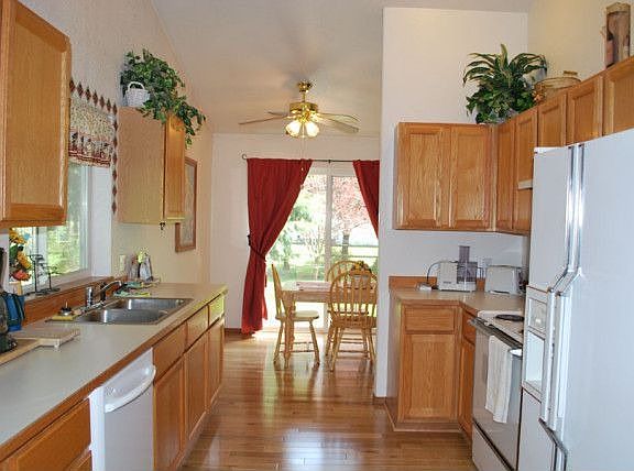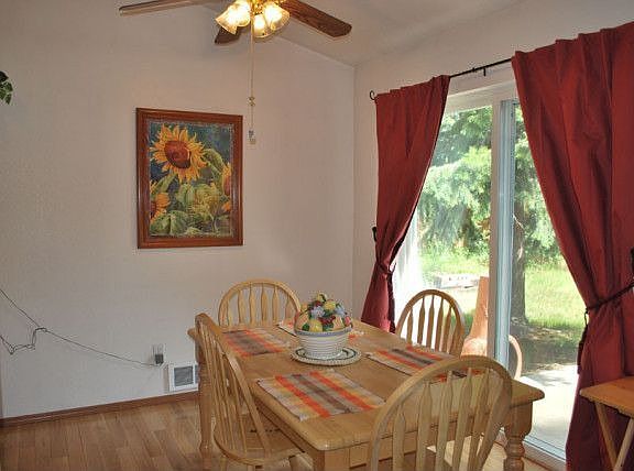 Adorable, well maintained home with easy drive to Bonners Ferry, Montana, the beautiful Moyie River and many more North Idaho adventure spots. Tasteful new paint job, gated fence and beautifully landscaped flower beds make this house a stand out! Mountain views from the front yard. Perennials and high producing vegetable garden lovingly cultivated. Raspberry bushes, lilacs, peonies, hydrangeas and more. Inside, there's new paint in every room with quality hardwood floors in kitchen and dining area. Vaulted ceilings and sizable windows show off the home's abundant natural light. Good-sized master suite with dual closets. Laundry easily accessible from hallway. With a single-level floor plan and 2 car attached garage, this home is perfect for either starting out or retirement.
