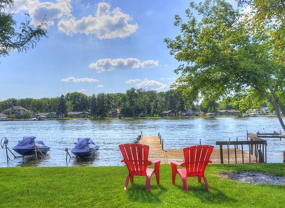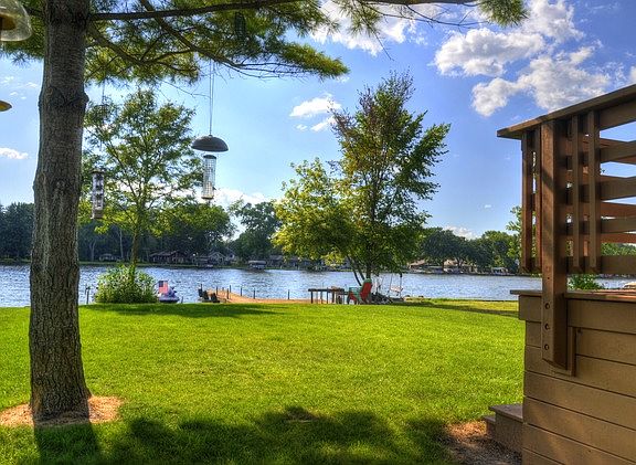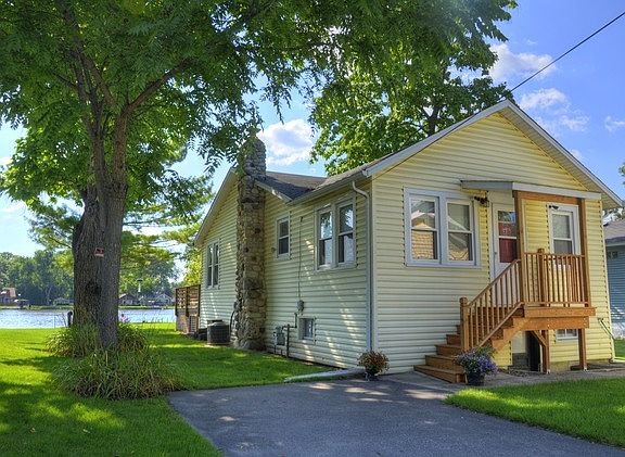 Affordable AND adorable RIVERFRONT home with 2 BEDROOMS, & a DEN ! AWESOME 2 car garage. Seller updated so much including WINDOWS, ROOF, CEILINGS, KITCHEN, BATHROOM, A/C, FURNACE, GARAGE, DECK, PORCH and more! GORGEOUS river views from the large deck. Ample sized level lot with beautiful trees. Nice dock. Located above the dam. Cruise the Fox, explore the Chain or just sit home and RELAX. HOME WARRANTY! A great summer cottage or a cozy home for year round living. Just move-in and ENJOY!