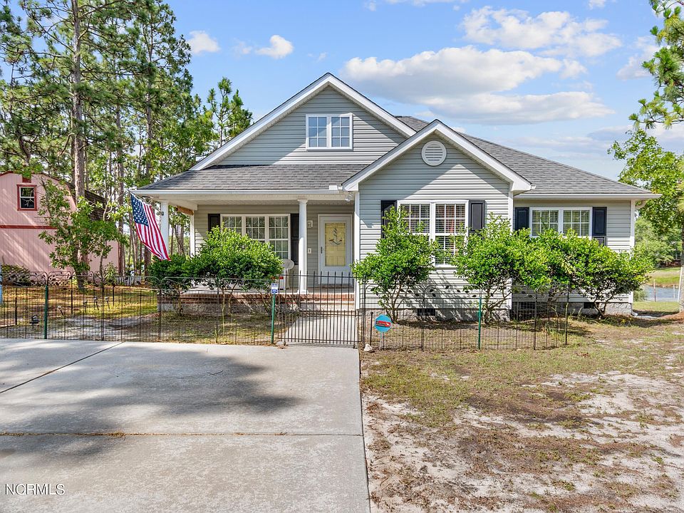 Your new lakeside home is at 213 North Lake Keziah Drive and ready to move in. This ADORABLE WATERFRONT cottage home won't stay on the market long with its gorgeous lakeside views and serene surroundings. Enjoy this nicely designed open floor plan 3 bedroom, 2 bath retreat with hardwood floors, open great room with cathedral ceilings, great island kitchen, covered deck and roomy outdoor storage shed. Perfect place to kayak and canoe. And when you finish kayaking in your lake you will enjoy lakeside grilling and relaxing on your covered deck or by the firepit. The Primary bedroom offers a trey ceiling, walk-in closet, garden tub and dual vanity. The spacious second and third bedrooms are great for family or guests. ONLY 20 minutes to area beaches and no owners association. A MUST SEE if you are looking for peaceful, easy WATERFRONT LIVING.