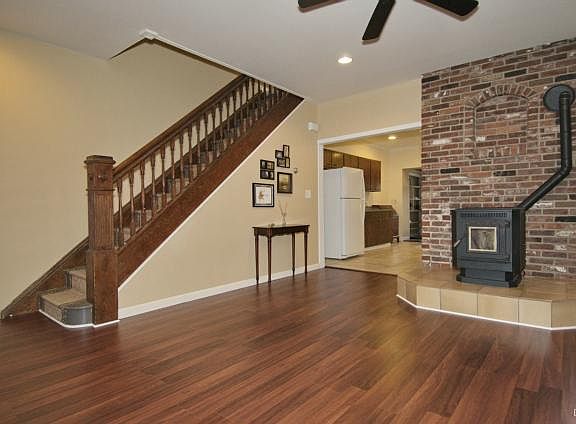 Living is easy in this gorgeous renovated home with newly remodeled 2-car garage. Enjoy the warmth of the cozy pellet stove in the living room with new flooring. Large windows & an open floor plan provide a light & airy feel to this beautiful home. The kitchen offers high ceilings, tile flooring, lots of cabinets & crown molding. A powder room & laundry room are located off the kitchen. Relax on the covered back deck or enjoy the covered front porch. The generously sized 3 bedrooms & full bath on the second floor are comfortable w/ brand-new paint & flooring. Many other improvements include a new roof, new heating system, recessed lighting throughout the first floor, new back sidewalk, & new windows. There is plenty of room for expansion on the third floor – could be a fourth bedroom with large walk-in-closet and half bath, or an office or playroom. The newly remodeled 2-car garage with 100 amp electric service is a perfect place to park or work on your vehicles.