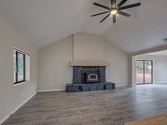 Home is on 1 acre and has beautiful views. 2225 square feet with 3 bedrooms, 2 baths and completely remodeled with tasteful finishings. New roof, covered patio, double pane windows, vinyl plank flooring, large fireplace with a wood burning stove insert, carpet in the bedrooms, new cabinets, new stove and microwave, counter-tops, new dishwasher, large laundry room, large loft area that makes a great office or family room. New paint inside and out. Great home in a desirable neighborhood.