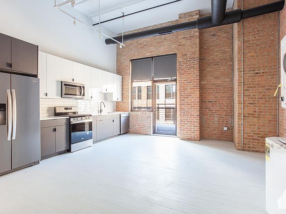 Stylish 1Bd + Den loft on TOP FLOOR with 2 FULL bathrooms now available in HOT Fulton Market. Renovated in 2021 - this 3 story 11 unit boutique elevator loft building has all the old charm with all the upscale finishes. Unit 305 is an oversized loft with new kitchen (sleek and modern cabinetry), white quartz countertops, stainless steel appliances, high ceilings, white wood floors, laundry in unit, two modern bathrooms, and balcony! Outdoor parking available $150. Pets negotiable with additional fee. $500 nonrefundable move in fee. No security deposit. Pets negotiable $250 fee. Outdoor parking available M2M for $150