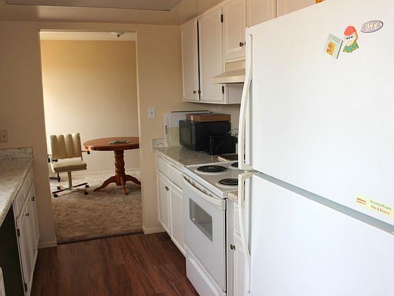 2BR 2BA Updated townhouse with FAIRLY NEW ROOF (tear off and complete replacement) Nov. 2015. Updated with new paint interior and exterior, new front door, new wood laminate floor in kitchen and baths. New carpet in bedrooms. Spacious rooms. Bedrooms are split by the kitchen and living room and both have access to large Arizona Room. LR has a cozy gas fireplace. Galley kitchen; formal dining room area. Stucco wall encloses patio area.