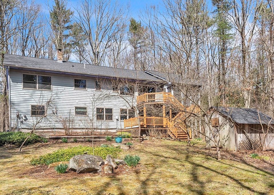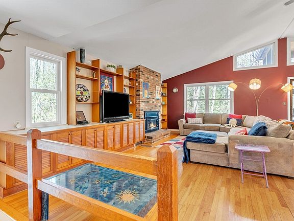 Be Surprised and Delighted with this home. Contemporary home with a state of the art remodeled kitchen sporting quartz counter, tiled back splash, and top of the line appliances. Flexible open floor plan. Living room sports many built-ins and a gas fireplace. Large dining room opens onto the large 12' x 21' screened porch and decking. Enjoy a steam shower in1st floor bath. Three large bedrooms with ample closets complete the top floor. The lower level has a second bath with washer/dryer, a family room space with a wood stove hookup, and a possible two extra bedrooms or flex spaces for home offices. Heated with oil and has propane for the cooking and gas fireplace. Large 3+ acre lot perfect for hiking. John Olver trail head is across the street. Home offers many gathering and getaway spaces. New roof, ,windows, septic system and kitchen. Private yard with fruit trees, blueberry bushes & more...Come Explore!!