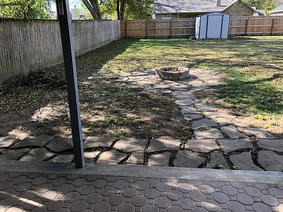 1080 sq foot house, metal roof, painted exterior brick, white picket fence in front, privacy fence in back, 10x16 covered back porch, 8x8 metal storage shed, granite throughout, tile in kitchen, bathrooms, and laundry room. Carpet in bedrooms, Wood look laminate in living room and hall. Nest thermostat. All carpet, laminate, light fixtures and interior paint 4 years old. Call or text 918-869-1510