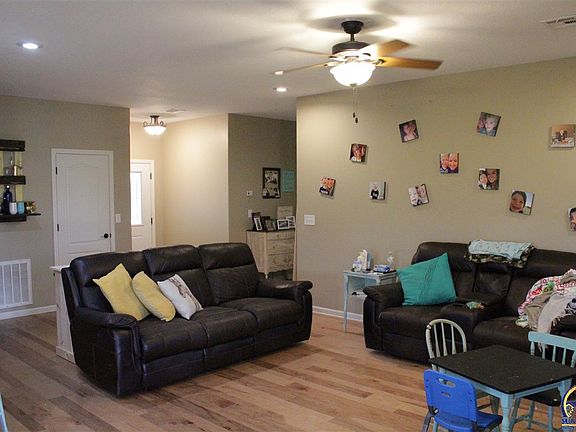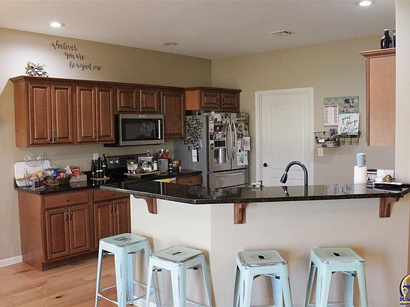 Open floor plan with zero steps, upgrades everywhere...granite countertops, gas fireplace, wood floors, tray ceiling, tiled walk in double shower, covered back porch. The master closet doubles as a storm shelter. Call today!