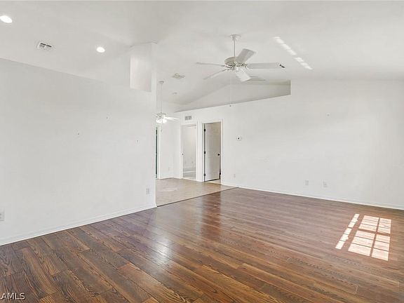 Take advantage of one of the better values in all of Cape Coral. Centrally located at less than $300,000, this home is ready for you to move in make your improvements. Perfect for an end user or investor looking to rent the home. Mature landscaping out front offers great curb appeal. Soaring vaulted ceilings through the center of the home along with newer wood laminate flooring. Pass through window at kitchen out to SPACIOUS under truss screened lanai with two sets of double sliders. Master bath features dual sink vanity, tiled walk in shower and frameless glass bypass door. Grab this home at this incredible value while you can!