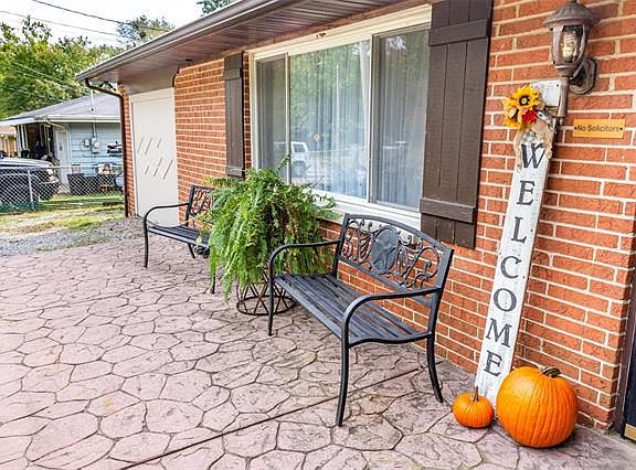 Gorgeous remodel on this move-in ready brick ranch, full detached oversized metal garage/ workshop- 220v hookup, heated, & bathroom! Hard to replicate this perfect setting for the price! Located in a subdivision, outside city limits- yet close to everything- including interstate access. Custom stamped concrete front entryway highlighted by the classic brick of the home. Inside you'll find a bright and airy open floor plan- with look through kitchen, great dining space, and large living room with picture windows. Farmhouse kitchen with painted white cabinetry and gas stove. Huge bedroom/ home office space/ rec room, located just off living room. 3 additional bedrooms and full bath on opposite wing. Separate laundry room. Full privacy fence on spacious flat backyard. Lovely covered patio entertaining area expands to concrete parking pads. Large grass play area. This home is perfect for entertaining inside and out. Move-in ready. This gorgeous home and amazing garage space is a must see!