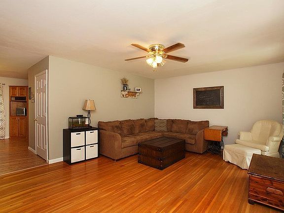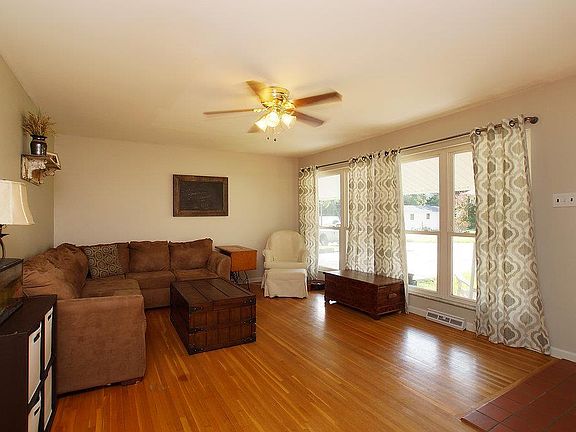Open House SUNDAY July 8, 1-3pm . Over 2000 sq ft living space in this 4 bedrm, 3 bath ranch with oversize 2 car garage! Covered porch to large living rm with hardwood flooring, ceiling fan & 2 sets of large windows. Open to spacious breakfast room- laminate flooring & built in buffet. Kitchen boasts oak cabinets & Samsung (2017) black stainless steel dishwasher, microwave & smooth top range/oven. Master Bedrm with hardwood & full bath with beadboard walls, updated flooring & vanity. 2 additional bedrms on main floor with hdwood flooring & ceiling fans. Main hall bath with updated bead board, vanity & light fixture. Over 900 sq ft of lower level finish including large family rm with frieze carpet (2015) & recessed lights. Rec Rm with laminate has laminate flooring, bar area with storage, full bath and 4th additional bedroom. Sliders to large patio and level fully fenced yard. Furnace 2011, AC 2013, 6 panel doors.