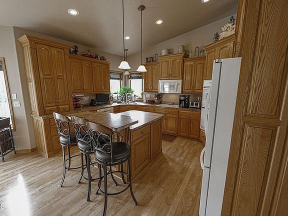 Your Private Oasis Awaits! The house is completely surrounded by trees. The privacy on your deck is that no-one can see you. Types of trees are: Ash, Ponderosa Pines, Plum, Chokecherry, Oak, Poplar, & Lilac Trees. The back yard features: Raised garden, fire pit, 2 sheds, & chicken coop. Did I mention the 32 x 56 Shop? Wired for peak/off peak with a 10 x 20 garage door. The concrete floor is 5'' thick. Now let's get to the house. 4 bedrooms with 3.5 bathrooms. Furnace with dual zone heating is just a couple of months old. The kitchen appliances: Refrigerator, Dishwasher & Double Oven are newer as well. There is a radon mitigation system. The garage is heated with electricity & is wired for off peak as well.