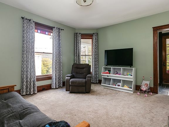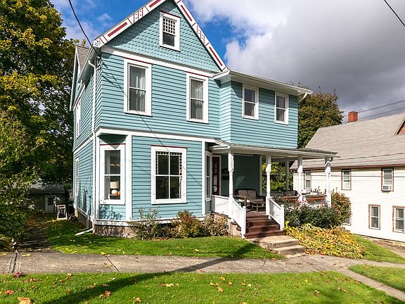 This is a well-maintained home with numerous recent improvements, ideally located within walking distance to downtown Corning's Market Street. The first floor features hardwood flooring, original moldings and trim, a spacious white kitchen, and a beautiful bay window with a built-in window seat. The electric panel was upgraded to 200 amps and Central A/C was also added, for your comfort. Upstairs you will find three bedrooms, two full bathrooms and a den, for that home office option. Outside a new two-car garage was added, something you don't find with many southside hill homes.