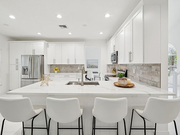 Welcome home! Completely remodeled, 3 bed/2.5 bath CBS pool home in Hammock Trace. Enjoy A-rated Schools in the heart of Jupiter. This home features a new tile roof 2021, brand new kitchen with quartz countertops, whisper shut cabinets, & stainless steel appliances. Remodeled bathrooms with double walk-in shower. New A/C high efficiency coils. Patio was sealed, new pool equipment, and a summer kitchen. Vaulted ceilings, accordion shutters, new front load washer & dryer, generator hook up, new exterior paint, hurricane doors, screen enclosure w/ new netting, & plantation shutters. The home is tucked away on a cul-de-sac w/ new tropical landscaping giving it the utmost privacy and an extra long driveway for plenty of parking. Close to the beach, restaurants and shops
