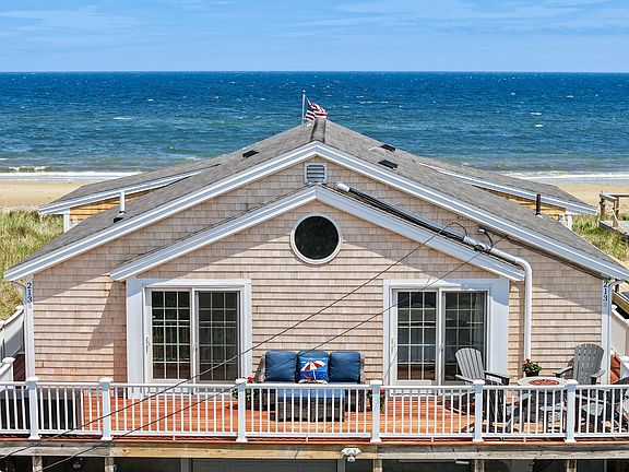 Welcome to your beachfront oasis on the sought-after Sagamore Beach. This stunning beach house, originally designed as a two-family home, offers two separate living spaces, perfect for versatility and privacy. With numerous recent updates, including a new roof, siding, and a Mitsubishi heating and cooling system, this home is ready for you to enjoy.Step inside to discover luxurious 10'' engineered oak floors throughout. Each side of the home features a bedroom that opens to a charming mahogany deck, providing a peaceful retreat with views of the backyard. The spacious living rooms are perfect for relaxation and entertainment, with one room capable of doubling as an additional sleeping area. The chef's kitchen is a highlight, boasting a breakfast bar, granite countertops, and new stainless steel appliances, making it a dream for cooking and entertaining.The home's crown jewel is the expansive four-season porch along the oceanfront, offering panoramic views and a perfect spot to relax and unwind. Imagine feeling the sand between your toes just steps from your door, accessed via your own private path from the cedar walkway. The lower level adds convenience with a single garage, ample storage, and a laundry area. This property is not just a home but an opportunity ideal as a primary residence, a beachfront bungalow, or a lucrative investment. Experience the ultimate in coastal living with this remarkable Sagamore Beach property.