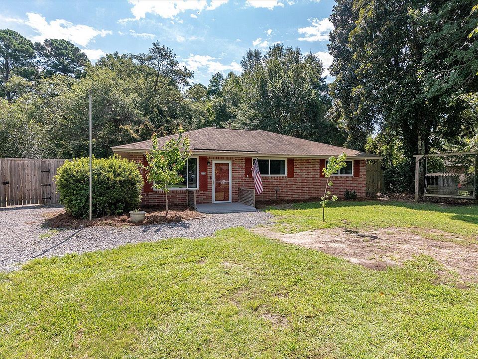 Welcome to this beautifully updated ranch-style brick home, nestled on a spacious half-acre lot shaded by mature trees, in the heart of Summerville. Inside, you'll find an open and inviting floor plan with spacious living areas, well-appointed kitchen, and comfortable bedrooms. This single-level residence is handicap accessible, and features beautiful wood look ceramic tile in the kitchen, living, and dining areas, freshly painted walls, LED can lights in the kitchen, and a beautifully tiled master shower. Other recent updates include new windows and bathroom vanities, both replaced just two years ago and a tankless hot water heater installed 3 years ago. Enjoy the convenience of a carport, a extra large two-car detached garage/workshop, and a practical shed.Outside, enjoy a large, private fenced-in backyard that provides ample space for outdoor activities and relaxation. The oversized driveway and double gates leading to the back yard and no HOA make this the perfect property to store your boat, camper, and any other toys. Located close to shopping and restaurants, this home offers a blend of comfort, style, and accessibility.