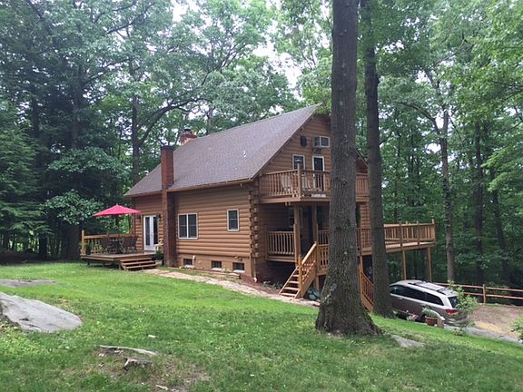 2100 square foot log home located in a private setting. Three floors of living area. On the main level you will find a lovely open living area consisting of the living area, dining room, newly remodeled kitchen, and main bathroom. From this level is access to the extensive decking from where you can see the wildlife. The loft area which hosts a large master suite with a desk area, large walk in closet, and the second bath which includes a tub with Jacuzzi jets. The bottom walk out basement holds two bedrooms. There is also a game room and the washer and dryer are located on the lower level.