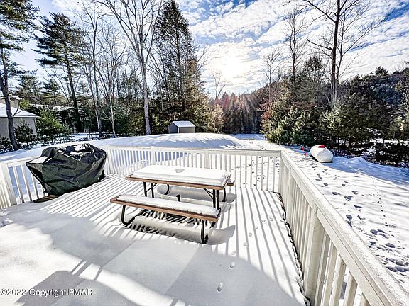POCONOS MOUNTAIN LAKEFRONT RETREAT 2006 Newer Built Exceptionally Meticulous FULLY FURNISHED & TURN-KEY AIRBNB Ready 3-LEVEL 5BR 3.5BA Center Hall Colonial Home Offers a Serene Getaway Leading to an Unpaved Private Road to Your Dream Lake Home w/ Its Own PRIVATE DOCK! Immaculate Home Features Modern GOURMET Center Island Kitchen w/ Gas Grill, 2 Stainless Steel Wall Ovens, GRANITE COUNTERS & Center Island Prep Sink! Open Layout to Breakfast Dining Area to Living Room Access Ideal for Entertaining! Plus, Sliders to DECK Overlooking the Lake! OFFICE/DEN Enclosed by French Doors Off Foyer! Oak Hardwood Throughout Main Living Area w/ Gas Stone Fireplace! Large MASTER SUITE has Dream WALK-IN California Closets & Private Spa Bath Suite! 3 Additional Generous Sized Bedrooms w/ Main Bath... & Pull-Down Attic for More Storage! FULLY FINISHED LOWER LEVEL Features Rec Room Living w/ FITNESS/WELLNESS Room & Additional 5th Bedroom w/ Closet or BONUS Game Room Plus 3rd Full Bath! Huge LAUNDRY ROOM/Utility Room! Back-Up WHOLE HOUSE GENERATOR! Low HOA & Low Taxes! Perfect Getaway Surrounded by Mature Trees & Calm Lake w/ Glimpses of Wildlife in Your Backyard! MUST SEE to Truly Appreciate!