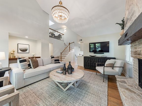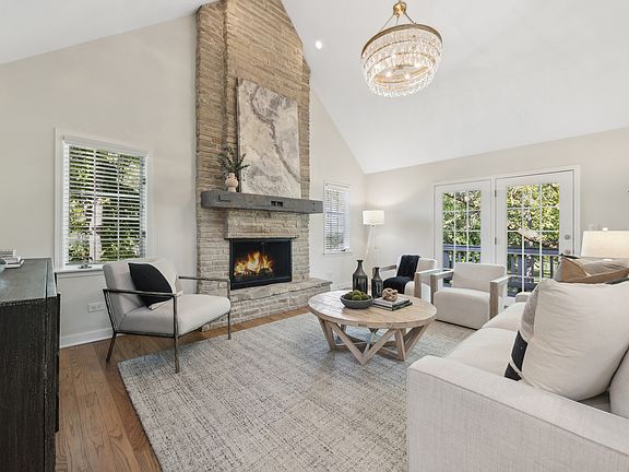 Welcome to this beautifully updated end-unit townhouse, bathed in natural light and ready for you to call home! This inviting space features 2 generously sized bedrooms, 2 bathrooms, a lofted area, and an additional office/den, offering both comfort and flexibility. The dining and living rooms are enhanced by soaring cathedral ceilings, while a cozy stone fireplace adds warmth and character. The kitchen is a chef's dream, complete with white shaker cabinets, quartz countertops, and top-of-the-line stainless steel Bosch appliances. Step outside to your private deck and discover the perfect harmony of indoor and outdoor living. Additional highlights include a wet bar and solid oak hardwood flooring throughout. With a new A/C unit, washer/dryer, and water heater, this home is brimming with charm and modern conveniences. Don't miss your chance to make it yours!