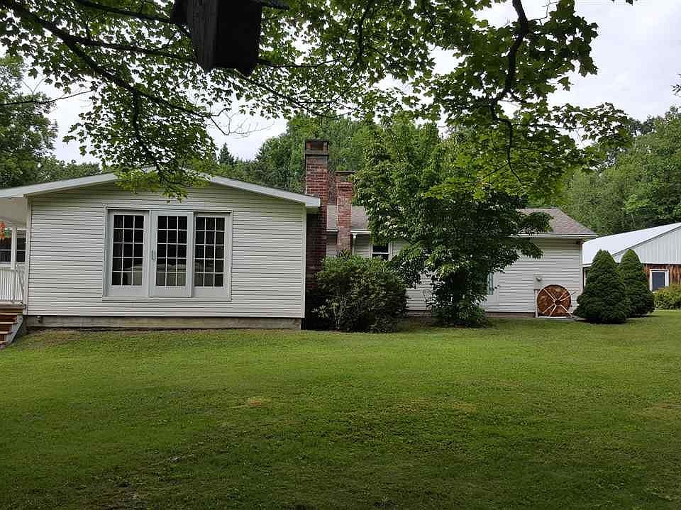 Charming 3-4 Bedroom, 2 Bath Home w/1321 SF of Living Space. Living Room w/a Great Room feel. Woodburning Fireplace. Open Kitchen/Dining Room. Hardwood Floors under W/W carpet. Family Room w/Woodstove in Basement. Newer Roof, Boiler & Anderson Windows. Great Rocking Chair Porch overlooking private acreage. Lovely Patio off Kitchen. 30' x 30' Heated Detached Garage-parks 4 tandem-plus 2 Changing Rooms & 1/2 Bath. Taxes listed w/no exemptions. Buyer qualifies for $531 Basic STAR. Shared drive w/215 Radley Rd.