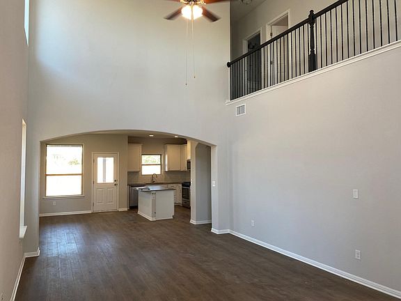 Larkspur community. 20" ft ceiling in the family room, quartz countertops, Luxury vinyl floors, large game room, no neighbor behind. Shower and Tub combo in the master bath with dual vanity. Walk-in closets in every room. Easy access to 183. Leander train station is nearby. Community pool, playscape, and more... Tenant pays all utilities