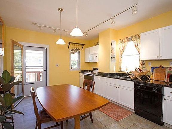Sunny, renovated 2br with parking and great outside space. Adorable! 2009 eat-in-kitchen is a show-stopper, with its sliding doors to large private deck for seasonal dining, great sunsets. Newly refinished floors, updated bath, new paint. Energy efficient windows, new heat and hot water, fully insulated, well run association with super low fees. Bonus deeded exercise/office in basement, plus common storage and laundry. Heath School. What's not to love?