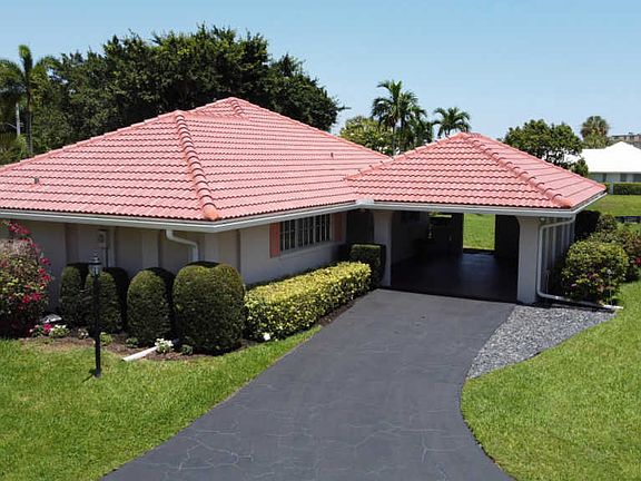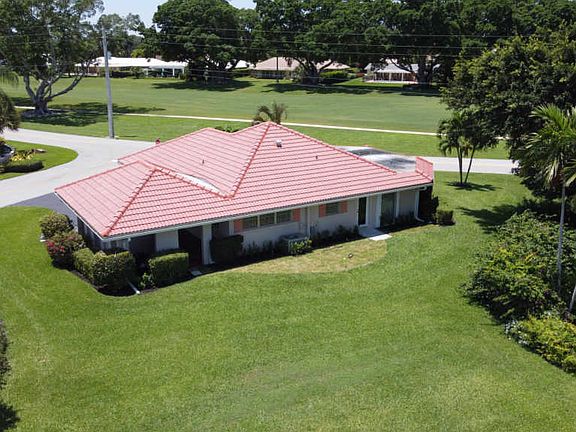 Hurry! This one is move in ready! Lovely renovated villa sited on a spacious lot with open fairway views of the golf course upon entry! This home is uniquely situated on a corner lot allowing for views of the golf course and lake views beyond. Amenities include: decorator travertine floors through all living areas, well maintained kitchen with stainless steel appliances, renovated master bathroom with glass enclosed shower & walk in closet, spacious guest bedroom with dual closets, renovated guest bathroom with shower/tub combination, separate laundry room has full size washer/dry with added closet for storage, new 2020 glass impact side door, accoridion shutters along the back of the villa doors, Roof 2018, updated electric panel, tiled car port, freshly landscaped.