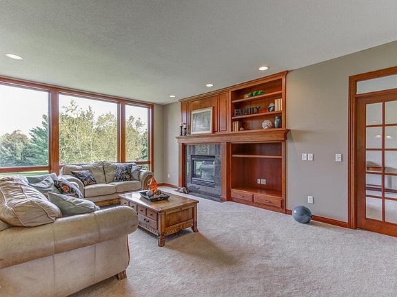 rich hardwood flooring, cherry cabinetry and painted trim, solid 6-panel doors, granite countertops, center island, gas fireplace, and ceramic tile floors. Through gorgeous French doors, you enter the Master Bedroom Suite, which includes full jacuzzi bath and large walk-in closet. Four additional bedrooms with ample space for everyone overlooking the beautiful views of the serene landscape, garden and mature trees from every room. This secluded property is the home you've been waiting for!, Directions From Hwy 52 north of Rochester, turn east on Hwy 63 (75th St NW), Turn right on West River Road, Turn left on River Bluffs Ln NW.
