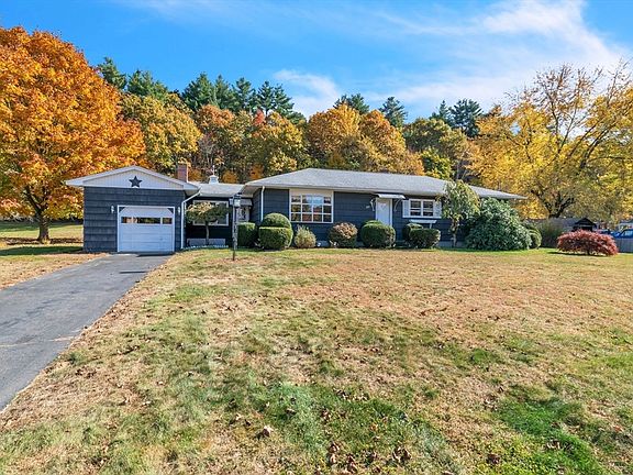 This excellent three-bedroom ranch has been well-maintained and offers comfortable living space. The breezeway/den provides a warm and welcoming entrance to the home, complete with a fireplace and a slider to access the large backyard. The kitchen boasts ample cabinets, a picture window, and a dining area, while the spacious living room features a bay window, hardwood floors, a coat closet, and a front entry. The property features three generously sized bedrooms with ample closet space and hardwood flooring under the carpeting and a full bathroom with a tiled shower/tub combination. The basement offers a potential in-law or teen suite that includes a second kitchen, a full bathroom, a family room, and a laundry room equipped with cabinets and a laundry sink, in addition to plenty of storage space. Both the boiler and the roof are recent upgrades. This one will not last. Close to area amenities, major routes and the MA Pike.