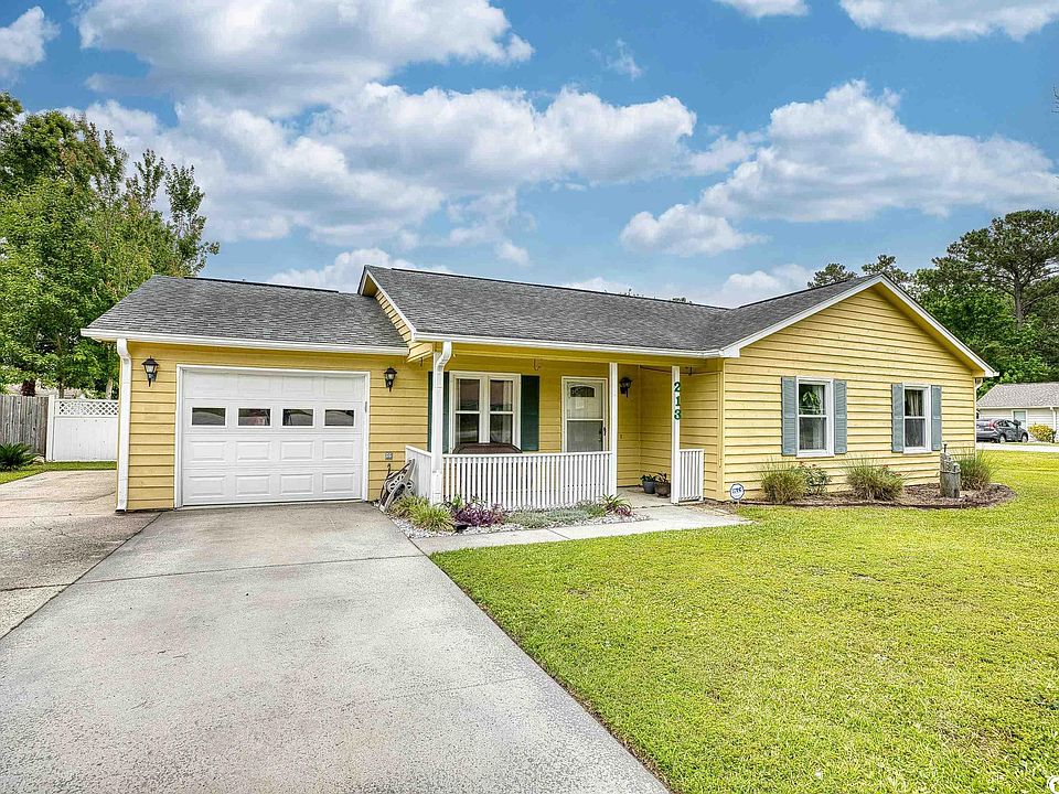 Welcome to this charming 3br/2ba home, with one car garage, sitting on a nice sized corner lot in Little River. The updated kitchen comes with granite countertops, stainless steel appliances, easy close cabinets and draws, crown molding on upper cabinets, track spotlights over kitchen sink, and a water filtration system, both for drinking water and making ice. The connecting dining room area has armchair molding and ceiling fan. The ample sized living room allows for natural lighting through the skylight in the vaulted ceiling. Take a step down into the connecting small but cozy sitting room, Carolina room, or reading area, that comes with built-in shelving. Sliding doors lead out into the privacy fenced back yard. The large master bedroom, with walk in closet and ceiling fan, could easily accommodate sitting room furniture. The master bedroom also has access to the small Carolina room. Both the master bathroom and hall bathroom have tiled flooring, a shower/tub combo with updated toilets. There are two guest bedrooms, one that was being used as an office. Enjoy spending time outdoors in your landscaped backyard featuring a concrete pad and additional paver pad. There is extra driveway pad to accommodate a trailer or boat, or parking for up to 5 cars. This Little River hidden gem is in an established neighborhood, with NO HOA. It is close to schools, medical facilities, the beaches of North Myrtle Beach, the North Myrtle Beach Recreation Park, dining, golfing, shopping and entertainment. This Little River location is close to Hwys 9, 17, 90 and 31, several public boat ramps and only a short ride over the border into Calabash, NC. You don’t want to let this opportunity for coastal living escape your grasp!