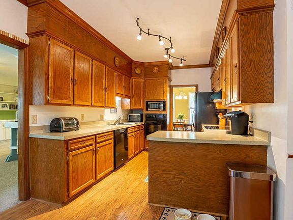- RoomKitchenFeatures: Pantry, Counter Tops-Formica, Floors-Hardwood, Cabinets-Stained