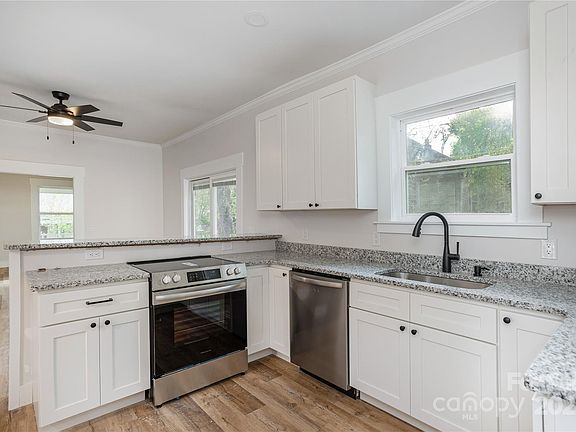 Quaint recently remodeled bungalow less than a mile to all Black Mountain has to offer. New Roof, Primary en-suite, Flooring, Kitchen cabinets, stainless appliances, granite countertops, and HVAC. It's gonna live like a brand new home but comes with all the character of old. Don't miss the huge detached garage/work shop.