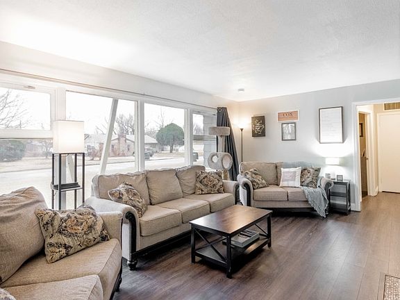Beautifully updated 2 bedroom 1 bathroom ranch home in the highly desired Haysville School District! You'll fall in love immediately with the elegantly vaulted ceilings, double sided fireplace, windows that sprawl from floor to ceiling, and new hardwood adorning the floor. New roof, new gutters, new paint, new flooring, new carpet, and remodeled bath! Out back you'll find your large cedar deck, storage building and large fenced in backyard. Call today to schedule your private showing!