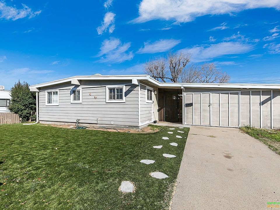 This perfect starter home has tons of opportunity to make it exactly what you're looking for! The home features a huge back yard with a covered patio, shed and ample additional space to build. The detached finished garage can be used as a man cave, extra living space or anything your imagination desires! The home has also been upgraded with laminate flooring, central heat/AC, dual pane windows and designer tile showers. Its location offers easy fwy access and is close to shopping, schools & restaurants.