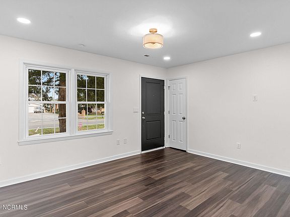 As you step inside, you'll be greeted by a spacious living room, the coat closet is directly behind the freshly painted front door and two big windows bring plenty of natural light into the space. The combination of the fresh paint, new water resistant floors, recessed lighting and new light fixtures create a welcoming atmosphere.