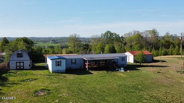 Beautiful Mountain view and a country setting. Very peaceful setting with a 2008 remodeled manufactured home. NEW metal roof. New flooring. Luxury-size master with 2 baths, super-sized walkin shower, double sinks. White cabinetry in kitchen. Watch the Sunrise, over the Mountains, from your front porch, and the Sunset from the Sunroom. Possibilities are endless with this 6.02 unrestricted acres. Home comes with a with a detached workshop/barn and 2 car detached garage. Includes fenced dog lot. ( S Blount water at road. )This property is being sold AS-IS.